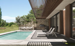 A new concept of modern suburban living is made possible in this innovative project. The main idea is to blend indoor & outdoor spaces and connect with the surrounding landscape. The steep slope of the plot makes this possible, providing breathtaking city views as well as pool areas at living room level. Natural materials, such as stone walls and wood claddings integrate the villas into the surroundings.
